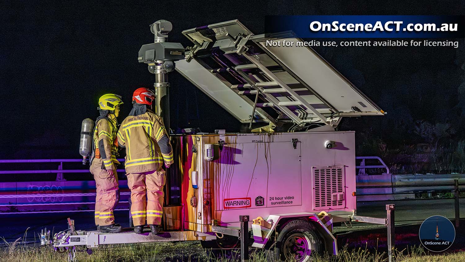 At about 10pm, ACT Fire and Rescue responded to reports of a fire on Gungahlin Drive between the Barton Highway and Gininderra Drive.